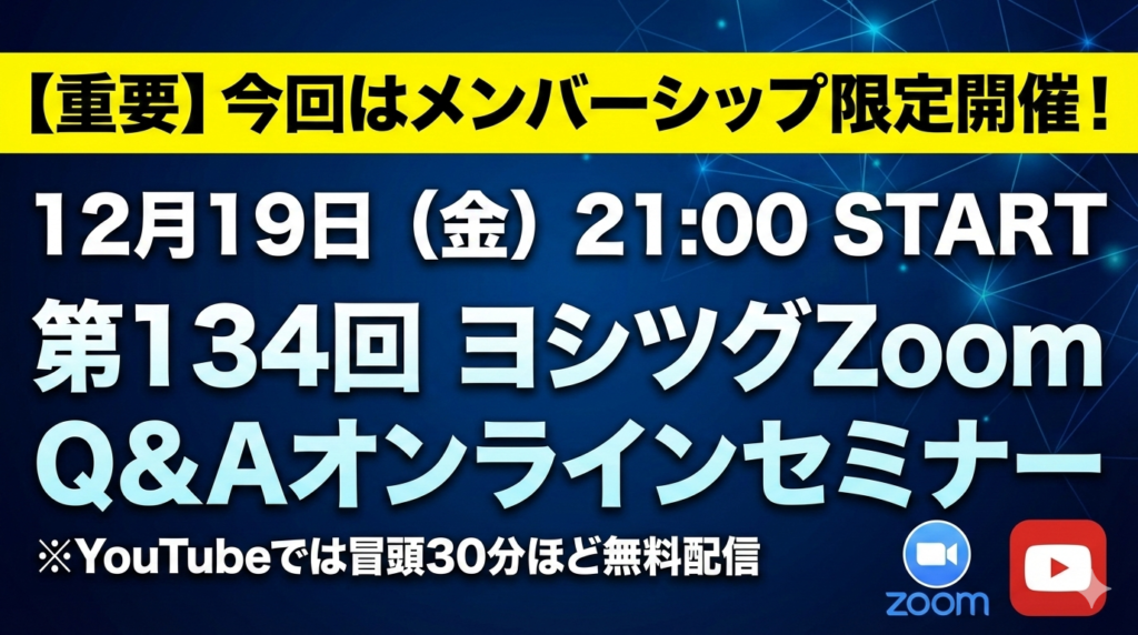 今年最後のQ&Aセミナーでも、メンバーの皆さんからいただいた質問にぶっつけ本番で私が直接お答えしていきます。