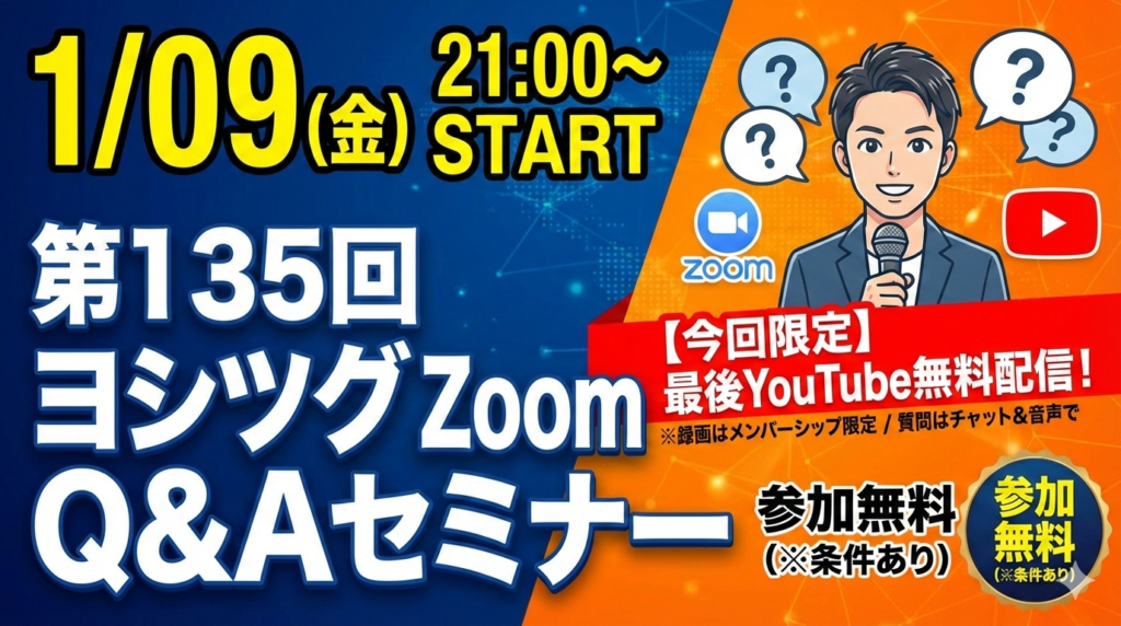 ■1月09日(金)21時~:第135回ヨシツグZoom「Q&A」オンラインセミナー開催情報