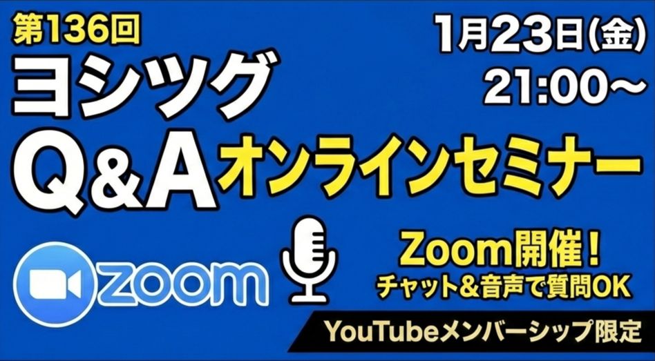 ■1月23日(金)21時~:第135回ヨシツグZoom「Q&A」オンラインセミナー開催情報